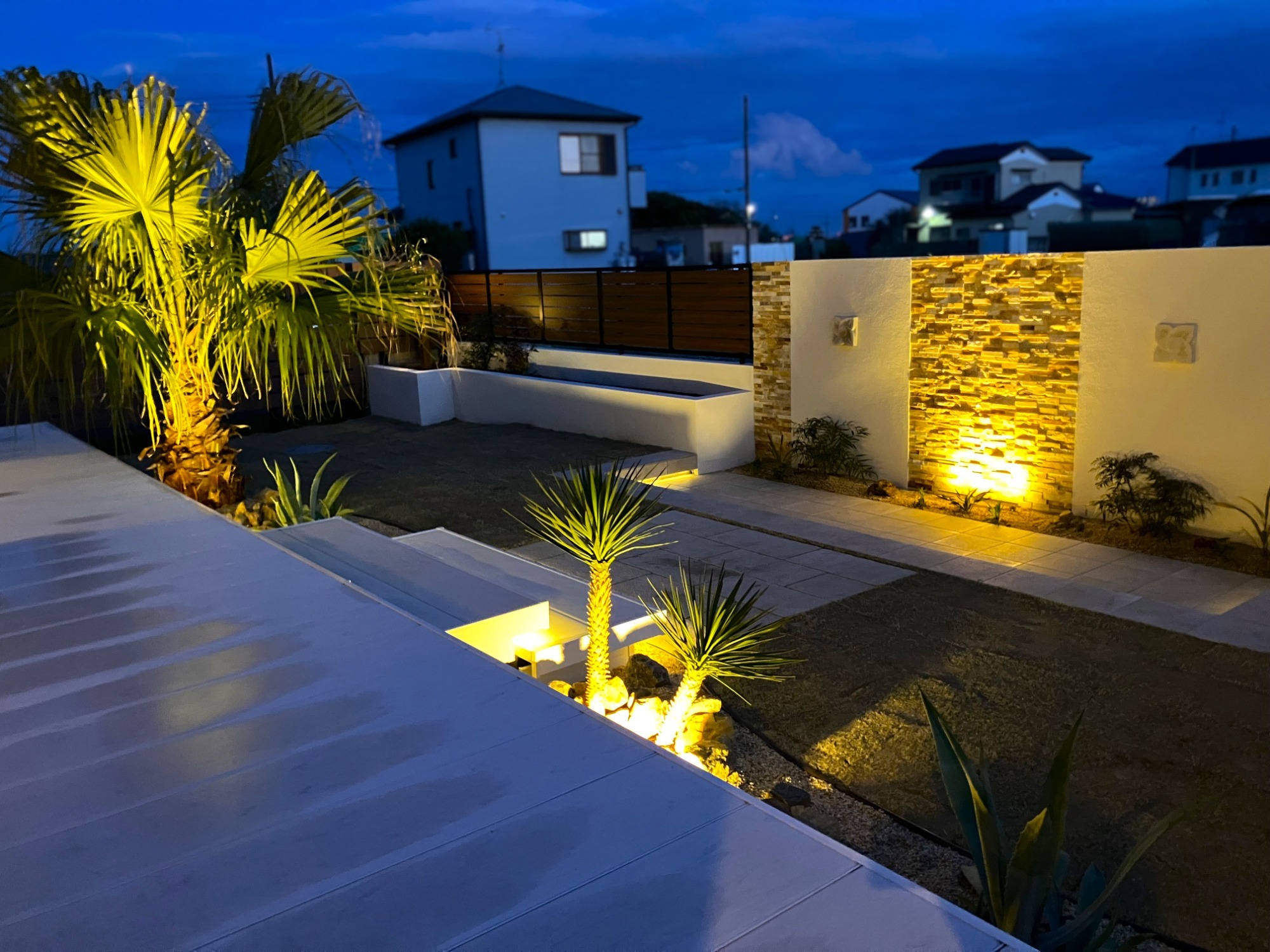 日中の爽やかな雰囲気とは打って変わり、夜のライトアップで、華やかに。