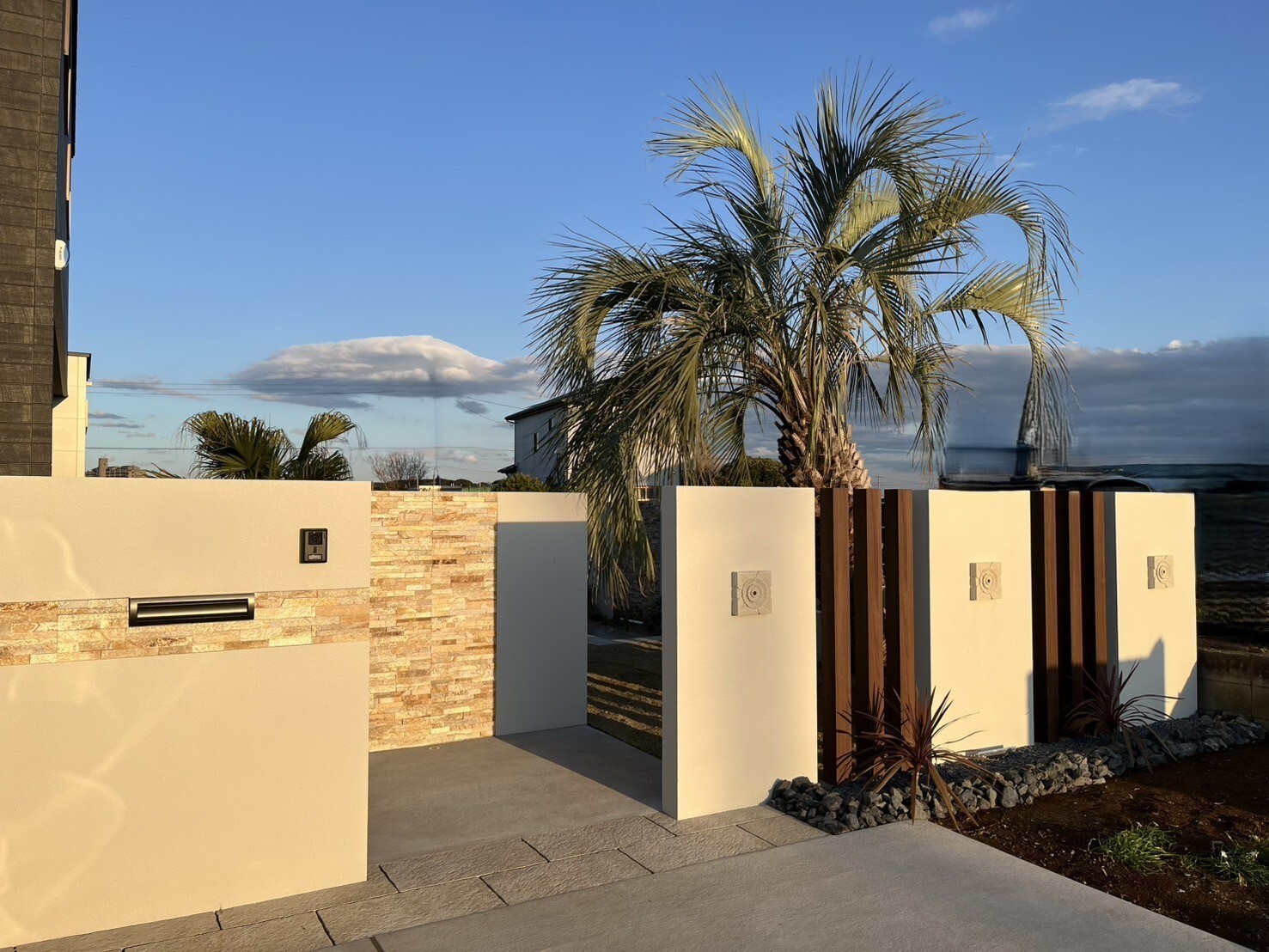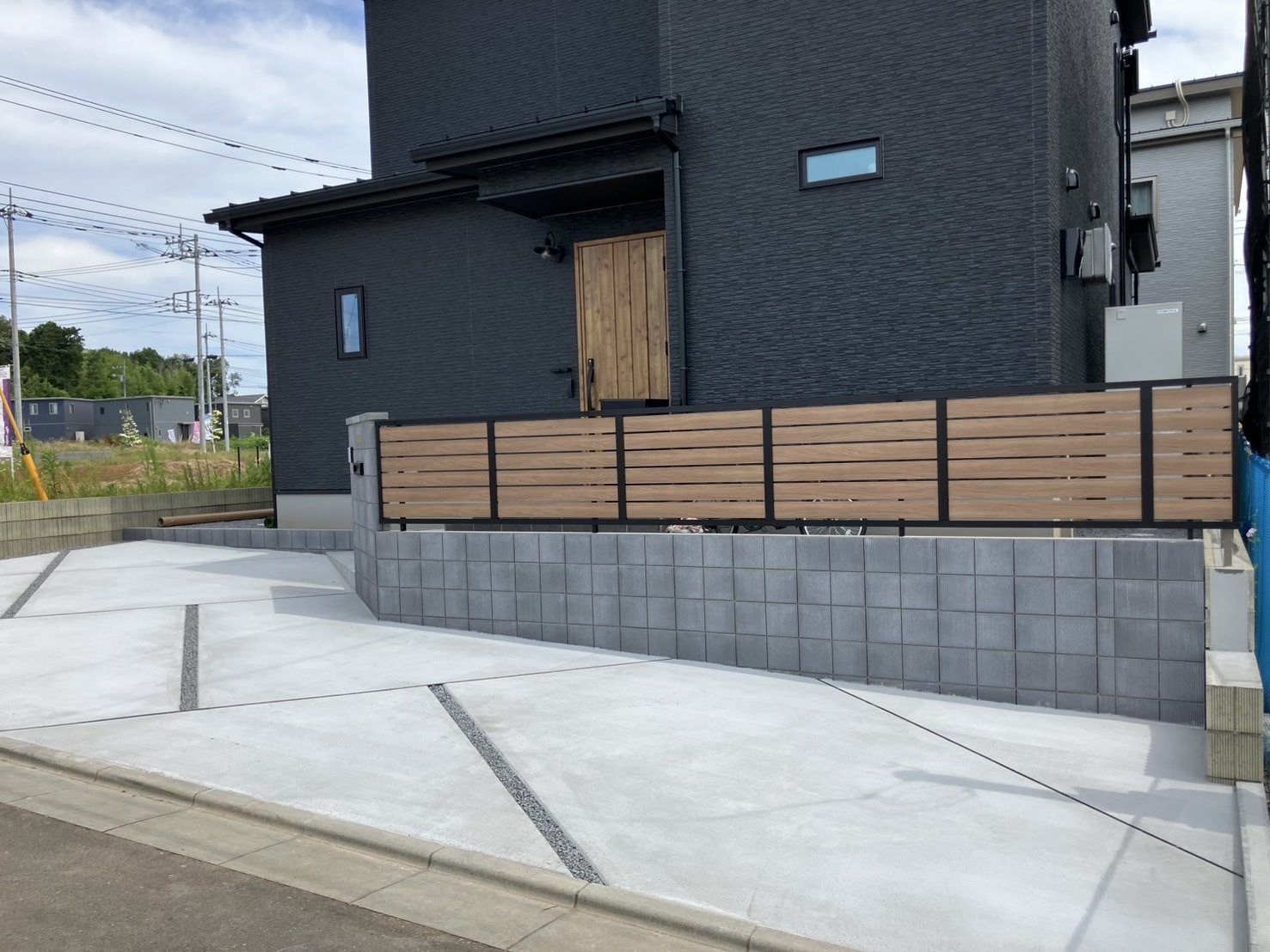 フェンスは木目調のフェンスにし、ワンポイントながら高級感のある仕上がりに